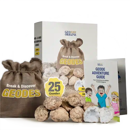 Uncover the beauty inside! Our Crack Your Own Geodes Box lets kids and adults (ages 8+) discover sparkling Moroccan geodes, fun, educational, and hands-on.